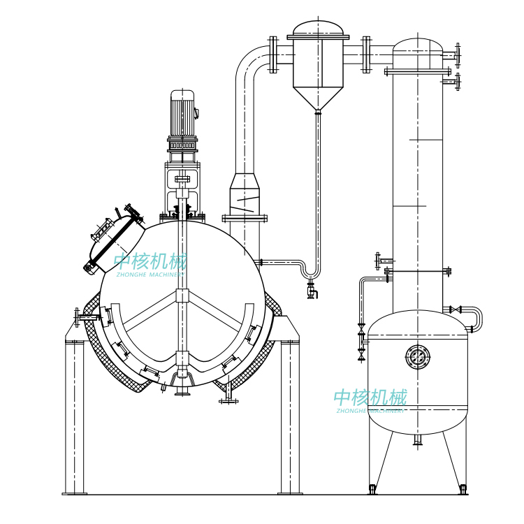 主要由濃縮罐主體、除沫器、汽液分離器、冷凝器、回收罐、攪拌傳動裝置組成,可用于制藥、食品、化工等行業(yè)對料液的濃縮、蒸餾、回收有機溶媒等工藝。由于采用減壓濃縮,故而濃縮時間短,對熱敏性物料不會破壞其有效成份。