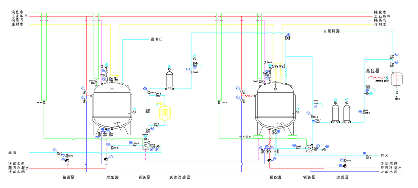 大輸液小針劑配液系統(tǒng)是制藥行業(yè)一條常見的生產(chǎn)線,主要設(shè)備有濃配罐、藥液泵、濃配過濾器、稀配罐、藥液泵、稀配過濾器等組成。大輸液小針劑配液生產(chǎn)線適用于制藥行業(yè)的濃稀配液之用,罐體設(shè)置夾套,可加熱和冷卻,內(nèi)表面鏡面拋光,管口拉拔,衛(wèi)生無死角,符合GMP標(biāo)準(zhǔn)。由于對(duì)滅菌的要求,因此濃配罐、稀配罐均有在線清洗和在線滅菌功能,衛(wèi)生,配液均勻,準(zhǔn)確。全自動(dòng)的配置稱重模塊,配液精準(zhǔn),效率高,安全可靠。